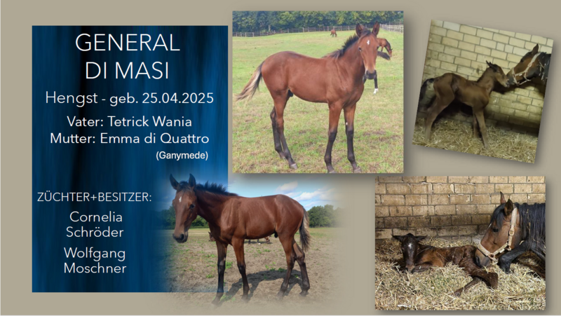 Alle Züchter haben die Möglichkeit, auf dieser Seite ihre Fohlen, die grundsätzlich die Voraussetzungen für die Eintragung in das deutsche Zuchtbuch erfüllen, mit Bildern zu präsentieren.