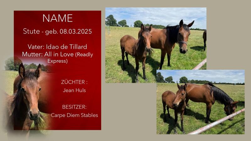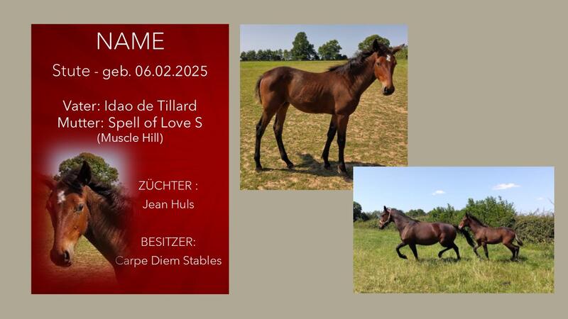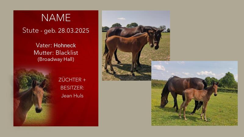 Möchten auch Sie Ihr Fohlen auf dieser Seite präsentieren? Nehmen Sie Kontakt mit uns auf!