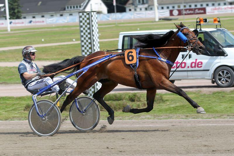 Ebenfalls für die Trainieranstalt Nimczyk ging es danach weiter mit Maxville. Robbin Bot schickte den Ready-Cash-Sohn offensiv in die Partie und machte ständig Tempo. „Mit leichten Eisen trabte er heute noch besser und schneller“, gab der Siegfahrer zu Protokoll im Winner-Circle. Simba setzte vergeblich nach und musste noch auf der Hut sein gegen einen speedigen Ile de Narmont.