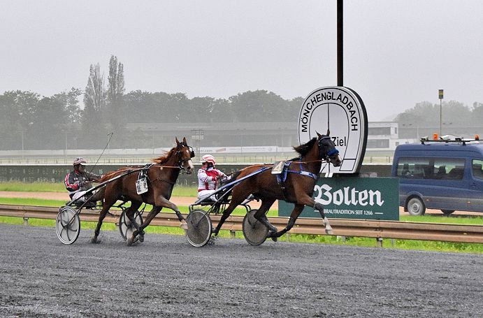Nach dem im dritten Rennen stattfindenden Besitzerfahren, in dem mit Narvik Eck (Nr. 6 / Marco Schindler) und Quara Mai (Nr. 7 / Julia Holzschuh) zwei Herausforderer für die Ultrafavoritin Heavenly Dreamgirl (Nr. 8 / Cathrin Nimczyk) parat stehen, sollte im dritten V6-Rennen des Tages, dem vierten Tageswettbewerb, die Stunde von It’s Racetime (Nr. 3 / Ute Kürten) schlagen, die sich in Drensteinfurt zweimal hat nicht die Butter vom Brot nehmen lassen. Doch Brady (Nr. 6 / Thomas Maaßen) und der in Berlin nicht im Vollbesitz seiner Kräfte agierende Donna Leone H (Nr. 7 / Nick Schwarma) sollten ebenfalls ein Wörtchen um den Sieg mitreden können.