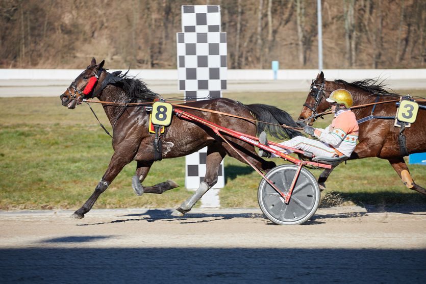 Unaufgeregt schaute er auf der Überseite zu, wie Casanova d’Amour (3/Jochen Holzschuh) sich abzusetzen versuchte, um kurz darauf nachzusetzen und dem ein Jahr jüngeren Roc-de-Montfort-Sohn auf der Zielgeraden mühelos das Nachsehen zu geben. Fahrer Michael Nimczyk hatte dabei ebenso wenig zu tun wie bei seinen drei übrigen Erfolgen, die ihn wieder einmal zum erfolgreichsten Akteur des Nachmittags machten.