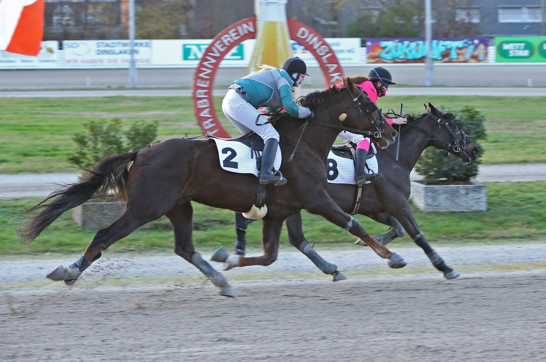 Auf Bronzehelm-Kurs segelt Robbin Bot. An seinem „Boss“ Michael Nimczyk kann er zwar nicht klingeln, doch zur Nummer drei in Deutschland kann er werden. Gleich drei Treffer gelangen ihm am Sonnabend. Nach dem Sieg mit Versace Diamant catchte Bot Quick Winner mit dem letzten Schritt an dem vom Fleck weg führenden Jack vorbei.