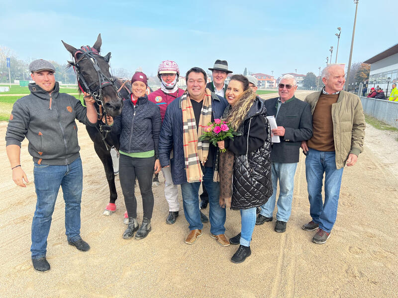 Im Gedenken an Ejadon, den Ausnahme-Traber der Familie Schreyer, überreichte der Enkel von Ejadon-Besitzer Hans Schreyer, Stefan Hiendlmeier, eine edle Siegerdecke und Champagner für die siegreiche Besitzerin Dr. Marie Lindinger. Renate Lindinger nahm den Ehrenpreis für ihre Tochter entgegen.