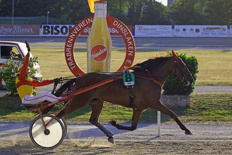 Der Abend begann formgemäß, als der zwei Runden vor Schluss an die Spitze gegangen Arcano BE mit Hendrik „Hennie“ Grift sich nicht mehr verdrängen ließ. Noch klarer favorisiert war anschließend der in Dinslaken noch unbesiegte Charity-Traber DeAngelo ForChildren, der mit Ex-Amateur-Champion Jörg Hafer aber das Glück des Tüchtigen auf seiner Seite hatte, als der lange führende Donner Gallant mit dem Sieg in der Hand sein Geläuf verlor und von der Rennleitung nachträglich disqualifiziert werden musste.