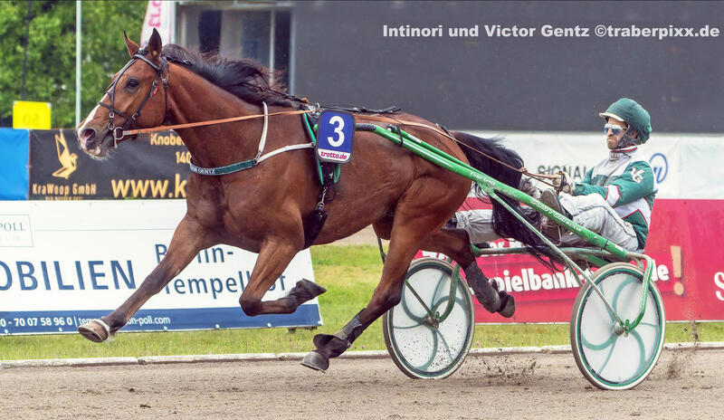 Von seinen bisherigen 32 Einsätzen konnte der für die Farben von Wolfgang Baumeister und Victor Gentz laufende Braune 19 gewinnen und war zudem sieben Mal platziert. Zudem scheint sein Motto für dieses Jahr – frei formuliert – zu lauten: höher, schneller, weiter. Denn Intinori hat in den vergangenen Wochen noch eine Schippe draufgelegt und präsentierte sich bei seinem Start-Ziel-Triumph am 25. Mai im vierten Lauf der Silber Serie unter Rekordverbesserung auf 12,6/1.900m in der Form seines Lebens.
