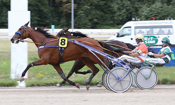 Neben den Vertretern des Teams Nimczyk setzten zwei dreijährige Damen mit Stuten-Derby-Ambitionen Ausrufezeichen der Veranstaltung. Die wuchtige Katalonia traf es in Gelsenkirchen leichter als bei den ersten Wettkämpfen in Schweden und war in der Hand von Robin Bakker von Beginn an das dominierende Pferd. In neuer persönlicher Bestzeit von 1:15,5/2.000 Meter war die Gerrits-Stute schlussendlich völlig überlegen.