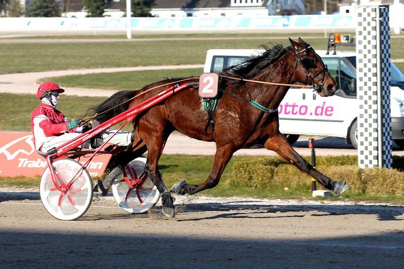 Sandra Weinert versteht sich bestens mit One Penny Black. Nach einem gemeinsamen Sieg in einem ähnlich gelagerten Gästefahren im Vorjahr setzten sich die beiden erneut durch. Diesmal wählte Sandra Weinert zwar eine andere Taktik, doch da sie an der Spitze sich alles perfekt einteilen durfte, hatte die Stute immer ausreichend Reserven, um nach verschlepptem Tempo zwischendurch am Ende abzufahren.