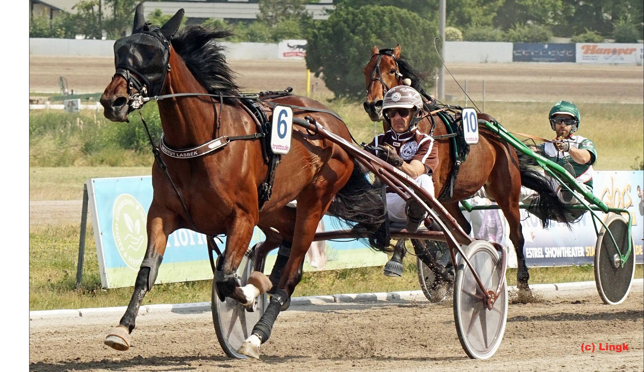 Unmittelbar danach legte ein weiterer Holländer, nämlich Yanick Mollema, eindrucksvoll nach. Der Amateur-Crack servierte seiner im Familienbesitz laufenden Stute Kamalia Joe ein Traumrennen an der Innenkante und fing Liten Frieda (Victor Gentz) in fantastischen 12,7/1.609m mit dem letzten Schritt ab. Es war die schnellste Kilometerzeit der Veranstaltung!