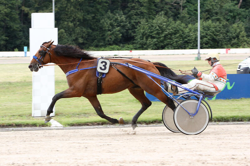 Eine kleine Überraschung gab es hingegen in der ersten Abteilung des Wettstar-Juli-Pokal für die Gewinnklasse bis 45.000 Euro. Hier hatte schlussendlich weder der (zu) früh außen auf sich gestellte Noubliez jamais (Roland Hülskath) die Nase vorne noch Co-Favoritin Arendelle (Michael Nimczyk), sondern die Nummer drei am Totalisator, Everest Vedaquais. Dabei hätte im Schlussbogen wohl kaum noch jemand auf den Franzosen und Fahrer Henk Grift gewettet.