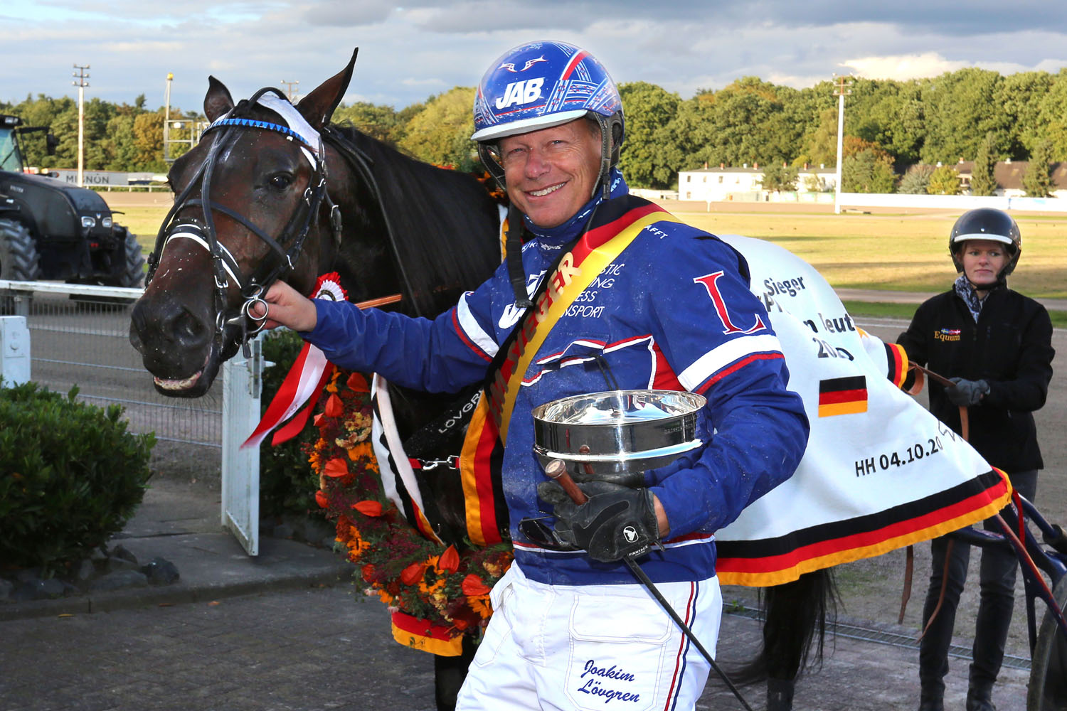 Im Grand Prix wurde zum einen die Tradition wieder aufgenommen, dass ein schwedisches Pferd ihn gewinnt, doch zum anderen ist dieser Oscar L.A. streng genommen ja gar kein „Schwede“, ist er doch im Besitz seiner Zuchtstätte, des Gestüts Lasbek, gelegen vor den Toren Hamburgs. Doch der Ready-Cash-Sohn wurde im schwedischen Gestütsbesuch eingetragen, so dass nicht nur der Fahrer, Joakim Lövgren, den Gegnern schwedisch vorkam, sondern eben auch ein vorneweg seine Kreise ziehender Oscar. Vom Fleck weg dominierte der Hengst die Konkurrenz und holte sich mit 18.000 EUR seine bislang höchste Siegbörse einer Karriere, die er Ende Mai 2019 in Hamburg siegreich begonnen hatte. Niemand fühlte ihm so recht auf den Zahn, deshalb konnte Lövgren fast „bummeln“, um am Ende abzufahren. In mäßigen 1:14,0/2200 Meter kanzelte er die Gegner ab, von denen sich Jason Dragon knapp Silber vor Jilt Flevo schnappte. Der favorisierte Däne E Type Cash war schon vor der Marke im gestreckten Galopp unterwegs.