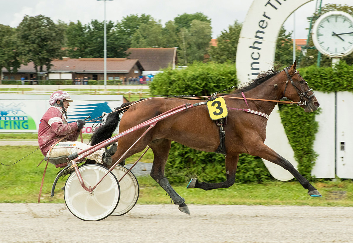 (mtzv-press) Der Familienrenntag am letzten Sonntag im August war in Daglfing nicht vom Wetterglück verfolgt. Starker Regen hatte die Bahn deutlich aufgeweicht und die Zuschauer folgten der Einladung des Rennvereins nicht ganz so zahlreich wie bei den letzten Malen. Spannung und einige Überraschungen waren eine Woche nach dem Derby dennoch geboten. Die 35.000 EUR Garantie in der V6-Wette mit einem üppigen Jackpot bildete die logische Klammer.