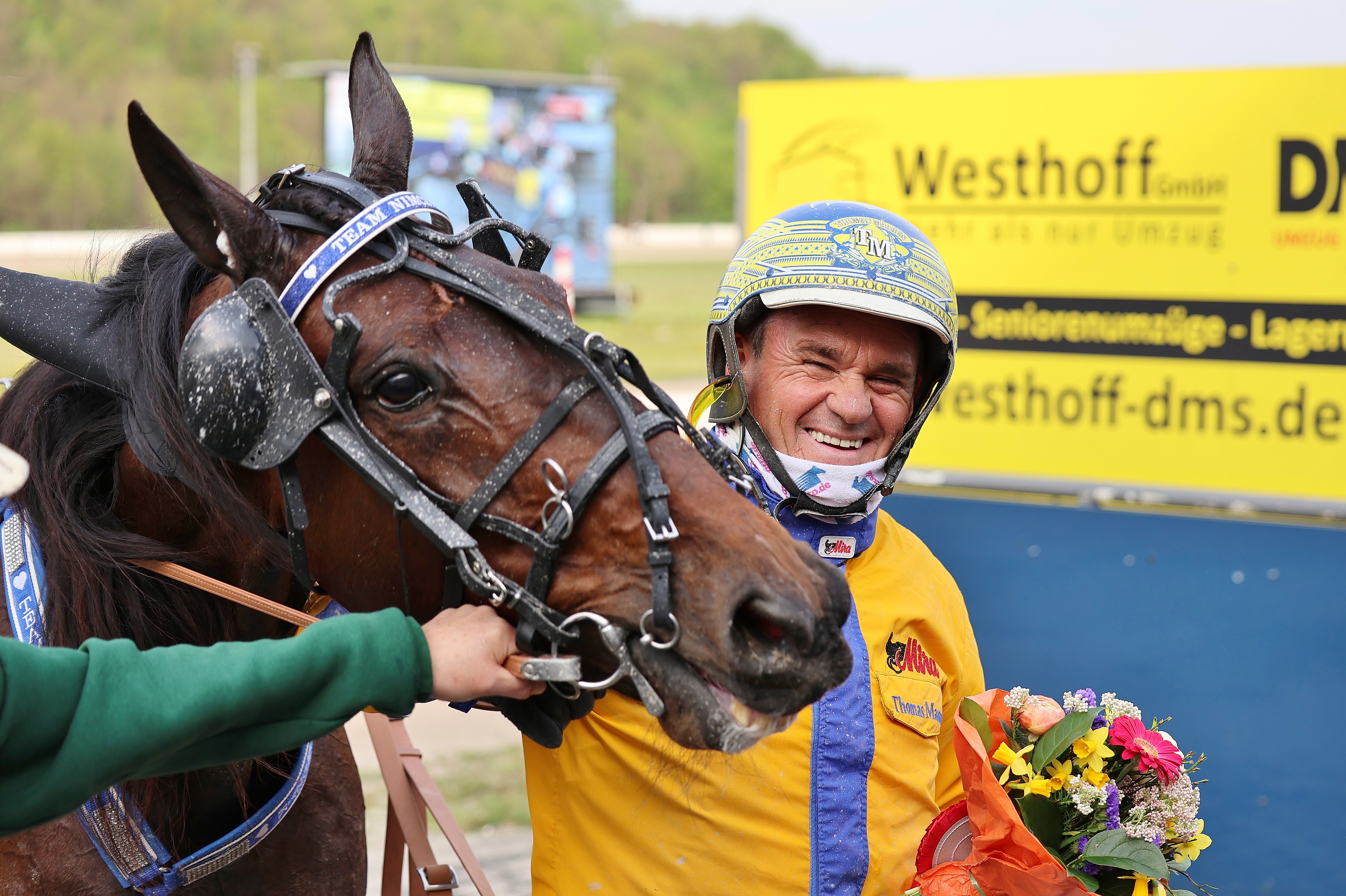 Aber dadurch, dass Thomas Maaßen den anstehenden Meilenstein vorab selbst nicht auf dem Schirm hatte und das vom Veranstalter in Gelsenkirchen in Eigenregie herausgebrachte Rennprogramm im Gegensatz zu dem der meisten anderen Bahnen die Statistik der am jeweiligen Renntag teilnehmenden Fahrer nicht enthält, blieb der 500. Karriereerfolg des 57-Jährigen am 18. April im GelsenTrabPark bis zum Sonntag in Bahrenfeld, wo der Inhaber des Willicher »Sitterhof« danach erstmals wieder in den Sulky stieg, leider unbemerkt.