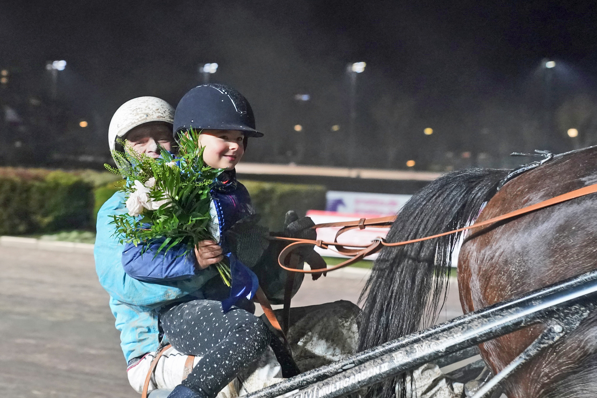 Ein großartiger Triumph, ein herausragendes Jubiläum – und über seine erste und zugleich jüngste Gratulantin durfte Zwiener ganz besonders strahlen. Denn das war natürlich seine kleine Tochter Amy, die selber schon fleißig im Sulky übt. „Sie ist halt mein größter Fan“, freute sich der Jubilar bei der Siegerehrung.
