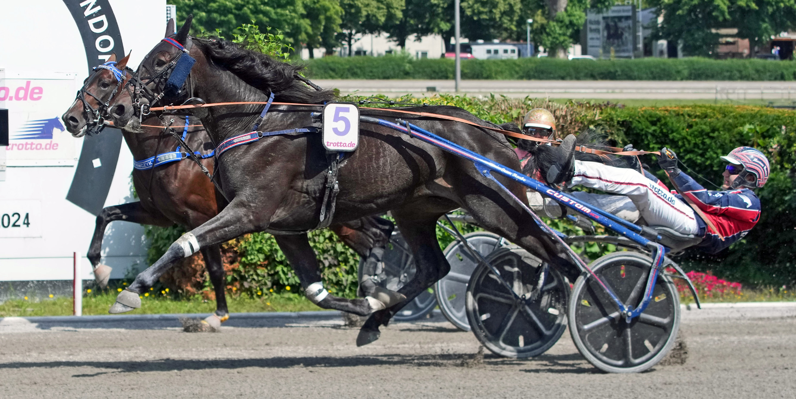 Der mit 6.000 Euro Preisgeld dotierte fünfte Lauf der Newcomer-Serie wurde am grünen Tisch entschieden. Der von Thorsten Tietz gesteuerte Ostwind hatte nach einer bravourösen Leistung und Verlauf in der Außenspur die Ziellinie zwar zunächst als Erster überquert – doch der sechsjährige Wallach wurde dennoch zum großen Pechvogel dieser Prüfung, denn er hatte unmittelbar vor dem Pfosten die korrekte Gangart verloren und wurde von den Stewards wegen Dreischlags aus der Wertung genommen.