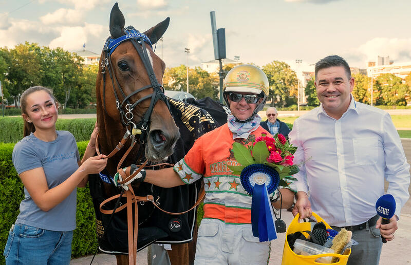 Die Veranstaltung begann mit einem Kantersieg von It’s Day und Dennis Spangenberg. Im Vorab-Interview hatte sich Marion Dinzinger, die Besitzerin und Trainerin des Coktail-Jet-Sohnes, sehr optimistisch über die Chancen des Wallachs geäußert und der Braune rechtfertigte die hohe Einschätzung voll und ganz. Der bei 2,3-fachem Geld gehandelte Fuchs ließ dem 1,4-Topfavoriten Impressive Ti (Thorsten Tietz) von der Spitze aus mit drei Längen Vorsprung nicht den Hauch einer Chance.