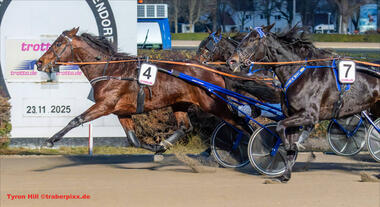 Preis von Mont de Marsa: Lady Black Rochel (Robbin Bot) könnte vor ihrem vierten Erfolg in Folge stehen. Die Stute hatte auch in Gladbach kaum Mühe mit ihren Mitstreitern. Celebrity Crush S (Thorsten Tietz) zeigte durchaus schon einiges an Talent, holte sich beim letzten Auftritt einen neuen Rekord. Duval di Masi (Thomas Panschow) kommt langsam, aber sicher in Fahrt.