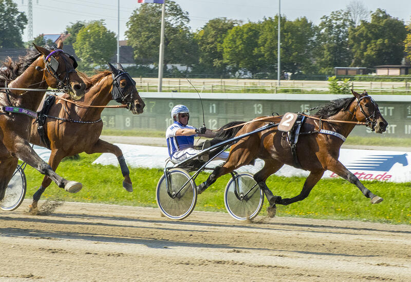 Dass Stefan Hiendlmeier trotz der Niederlage mit See the Moon allen Grund zu strahlen hatte, dafür sorgte Miss Red Lady. Die Stute, die in Berlin nicht ganz glücklich auf Rang drei einkam, zeigte sich in der Heimat in Bestform und siegte von der Spitze aus in starken 1:14,8/2.100 Meter überlegen. Magnum Stone und Major Sheba H holten sich weit zurück die weiteren Prämien.