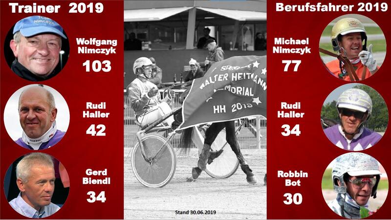 Trainer: Wolfgang Nimczyk ist mit 103 Siegen im 1. Halbjahr auf Rekordkurs! Rudi Haller sichert sich im Juni den zweiten Rang vor Gerd Biendl. Dicht gefolgt von Victor Gentz.