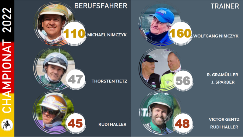 ++ Axevalla: Karin Walter-Mommerts Heathcliff (Kevin Oscarsson) 1. in 1:16,4/2140 Meter Bänderstart - Herbert Schützes Conquistador (Marc Elias) 6. in 1:16,4/2140 Meter Bänderstart - Romme: Patrick Maleitzkes Moon Walker S nach Fehler 7. in 1:20,1/2140 Meter Bänderstart, Midnight Lady S (Jorma Kontio) 5. in 1:15,8/2140 Meter, Sherburne S (Olle Alsén) nach Fehler unplatziert ++++ Samstag: Auftakt zum Breeders-Crown-Meeting in Berlin mit den Läufen der Fünf- bis Siebenjährigen - Bei den Stuten gewährt Cosmea Nortolanda Revanche für Hamburg - Berlin-Seriensieger Zoom Diamant vs. Jimmy Ferro BR und Brothers in Arms - Beginn 13:00 Uhr ++++ Samstag: Abschied der V75-Wette vor dem Umstieg auf die V85 in Bjerke/Oslo rund um den Axel Jensens Minneslopp ++++ Sonntag: Tag 2 des Breeders-Crown-Meetings mit den Läufen der Zwei-, Drei- und Vierjährigen - Neuauflage des Derbyduells Summermusic'night S vs. Aladin - Oaks-Siegerin Uffizie gegen Okura Greenwood und Sahara Firebird - Europas schnellster Dreijähriger Blizzard Diamant klar favorisiert - Beginn 13:00 Uhr ++++ Samstag/Sonntag: Lukas Strobl für Deutschland bei der Nachwuchsfahrer-EM auf Mallorca ++++ Dienstag: Finale der C-Bahn-Saison - Sechs Rennen in Dingolfing ab 14:00 Uhr ++