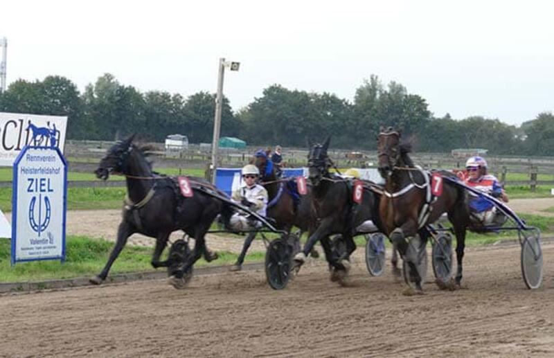 (Heisterfeldshof) Bereits zum siebzehnten Mal trafen sich die Traber am Samstag beim »Niederrhein-Renntag« auf dem Heisterfeldshof in Bedburg-Hau. Bei wieder einmal strahlendem Sonnenschein bekamen die Zuschauer vor Ort und an den Bildschirmen sieben Prüfungen geboten, von denen der ganz zum Schluss auf der Karte stehende »Große Preis der Firma pferdewetten.de« die größte Aufmerksamkeit verdiente und – mit ein klein wenig Unterstützung durch einen 3.000 Euro Siegjackpot – auch bekam.