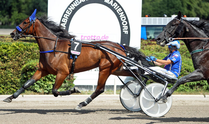 Zwei der insgesamt zehn Tagesprüfungen waren für die Amateurfahrer ausgeschrieben. Die erste von beiden wurde für André Pögel und Rolfi zu einer regelrechten Demonstration. Für den gelernten Hufschmied, der mittlerweile bei 493 Siegen steht, war es ein Debüt – Pögel hatte den Dunkelbraunen zuvor noch nie gesteuert. Beide harmonierten einfach perfekt und fertigten ihre Gegner Start-Ziel in überlegener Manier ab.