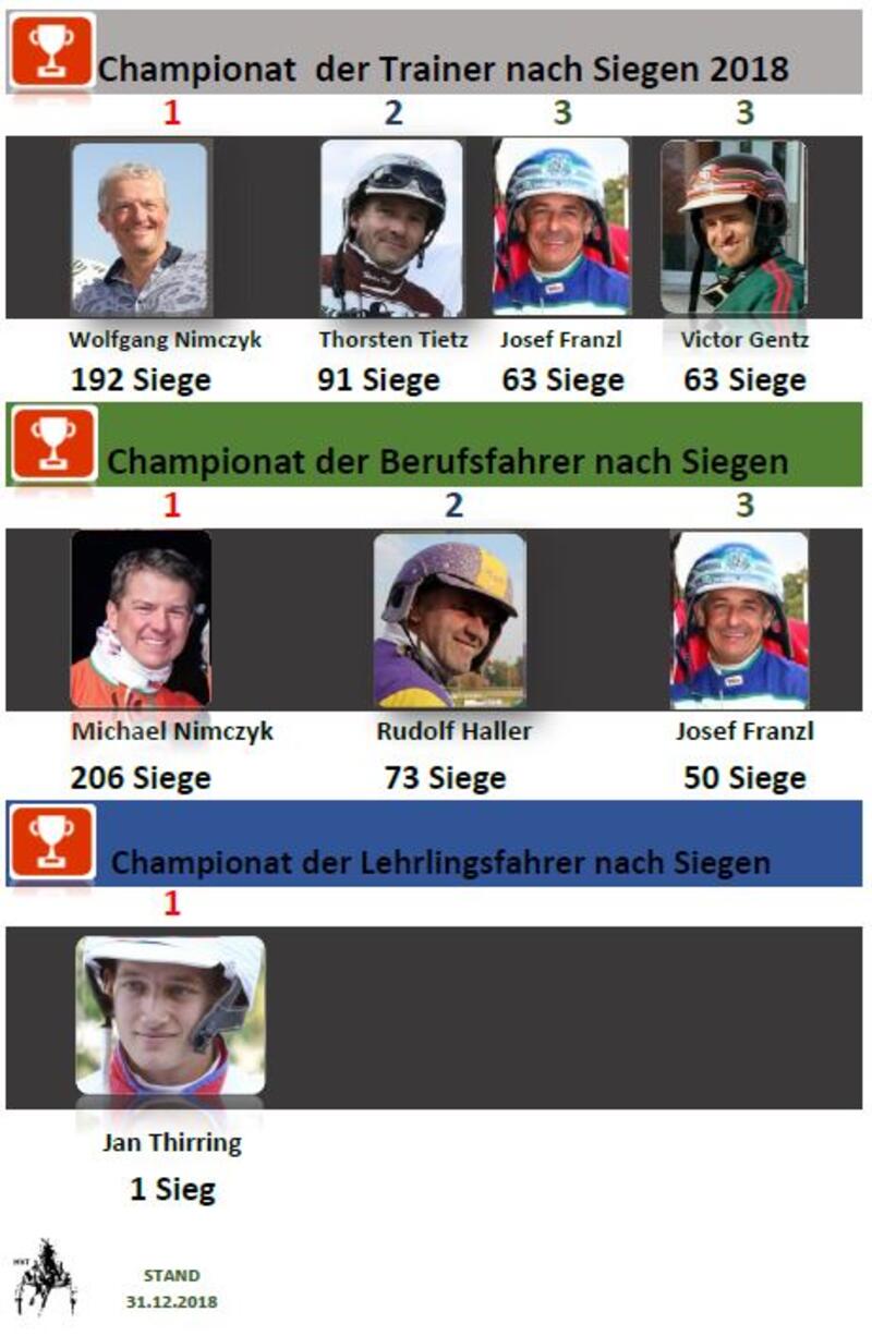 Thomas Maassen hat es geschafft! Drei Punkte Vorsprung vor einer noch am letzten Renntag siegreichen Julia Knoch. Dahinter teilen sich Dr. Marie Lindinger und Andre Pögel mit je 15 Siegen Rang drei.