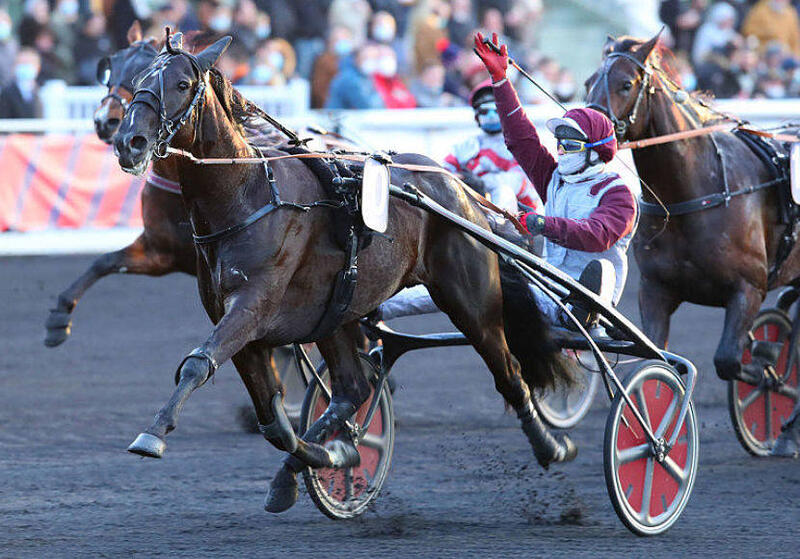 Vincennes, Sonntag, 30. Januar 2022. Erster Höhepunkt des Super-Renntags, zu dem Corona-bedingt nur 5.000 Zuschauer zugelassen waren und bei dem in elf Prüfungen die Rekordsumme von 2.240.000 Euro verteilt wurde, war der 120.000 Euro wertvolle Prix Camille Blaisot für fünfjährige einheimische Sattelspezialisten.