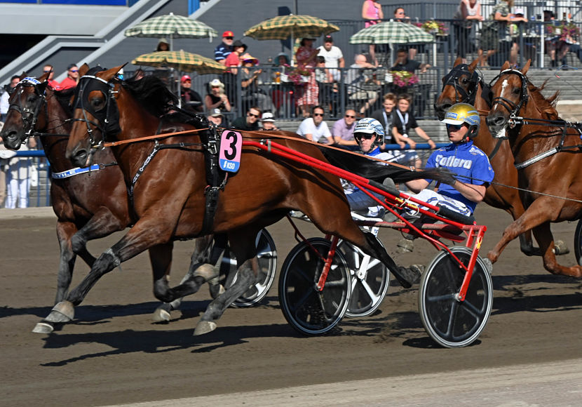 1½ Längen zurück winkte Blé du Gers lange Rang drei, doch driftete der Oslo-Sieger in der fetzigen Endphase zu weit nach außen. Die zusätzlichen Meter reichten nur für den fünften Scheck. Goops Gold-Rush perfekt machte Moni Viking, den Vercruysse in Spur drei herausnahm und damit Handsome Brad die Chance zum direkten Durchstoß eröffnete. Nutzen konnte sie der Brad-de-Veluwe-Sprössling nicht ganz und kam für „Bronze“ um eine Winzigkeit zu spät. Ewig seiner grandiosen Vorjahrsform läuft Makethemark hinterher, der die letzte klitzekleine Hoffnung nach einem weiteren Patzer im Schlussbogen begraben konnte und weit abgehängt am Zielrichter vorbeitrudelte.