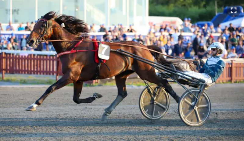 Bis 150 Meter vorm Ziel vermochte Global Badman dem 13:10-Favoriten die Stirn zu bieten. Dann setzte sich die größere Physis Charmant de Zacks eindeutig durch, der sich zum Jubiläum des 50. Auftritts auf drei Längen zum 14. Sieg absetzte, sich nach Åmål (5. Juni) die zweite Gulddivisionen in der Provinz einklinkte - dazwischen lag Platz zwei hinter Francesco Zet in jener von Lindesberg am 3. Juli - und nun 8.576.381 Kronen auf der Gewinn-Uhr hat.