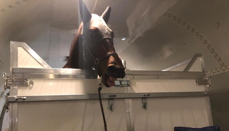 Cindy Truppo und Pflegerin Lea Preußer, die immer in ihrer unmittelbaren Nähe war, haben den Flug bestens überstanden und fiebern jetzt bei milden 18 Grad dem großen Auftritt entgegen. Noch heute geht es übrigens zurück nach Berlin, so dass Cindy Truppo am späten Abend wieder im heimatlichen Stall in Neuenhagen ankommen wird.