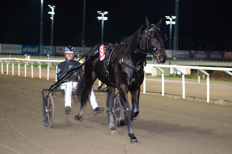Stefan Persson, der den für zwei Wochen wegen falschen Peitschengebrauchs gesperrten Per Nordström vertrat, kannte von Startplatz „8“ kein Erbarmen, ließ den Dunkelbraunen in vierter Spur durch den ersten Bogen toben und setzte sich nach 600 Metern in monströsen 1:10,2 vor Pele Boko (7) an die Spitze.