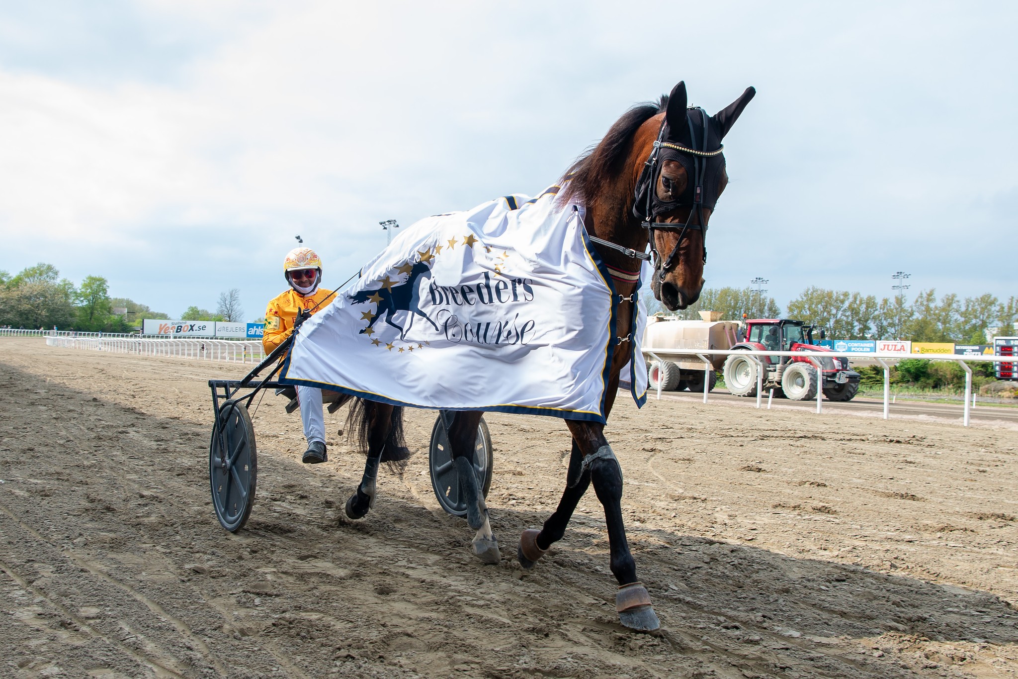 Jägersro, Donnerstag / Himmelfahrt, 9. Mai 2024. Im finanziellen Mittelpunkt des zehn Gänge umfassenden Gentlemanna-Dagen auf Schwedens Derby-Bahn standen vor fast 7.000 „Zahlenden“ die 3. und letzten Vorläufe der ersten Breeders-Course-Runde für die Generation 2021.