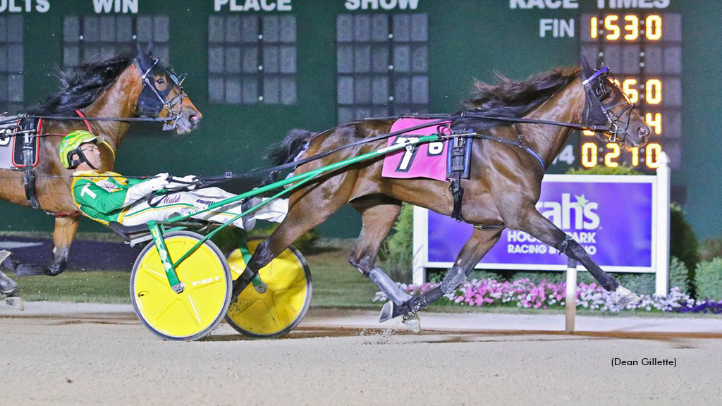 Ein „Hals“ entschied gegen den von Yannick Gingras für Ron Burke gefahrenen Booming Economy, der um eben diesen Abstand von seinem ständigen Schatten Maxim Hanover niedergerungen wurde.