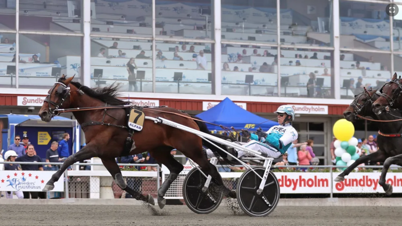 Ohne die ganz großen Namen wanderten die 300.000 Kronen für Platz eins an den Stall Zet um Daniel Redén, dessen US-Amerikaner Periculum beim dritten Versuch in der Alten Welt erstmals ganz vorn landete. Und das trotz eines kurzen Aussetzers 200 Meter vor dem „Ab“, so dass der Muscle-Hill-Sohn mit 15 Metern Rückstand praktisch aus der zweiten Reihe loslegte.