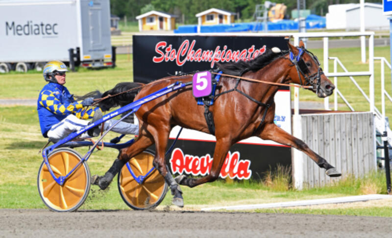 Der nächste Treffer - der fünfte aus lediglich sechs Versuchen - am 18. Mai in Halmstad fiel nicht minder überzeugend aus, so dass die unscheinbare Braune mit der raumgreifenden Aktion zur 49. Auflage der Guldstoet als sonnenklare 12:10-Favoritin ins Oval mit Schwedens längster Zielgerade einstieg.