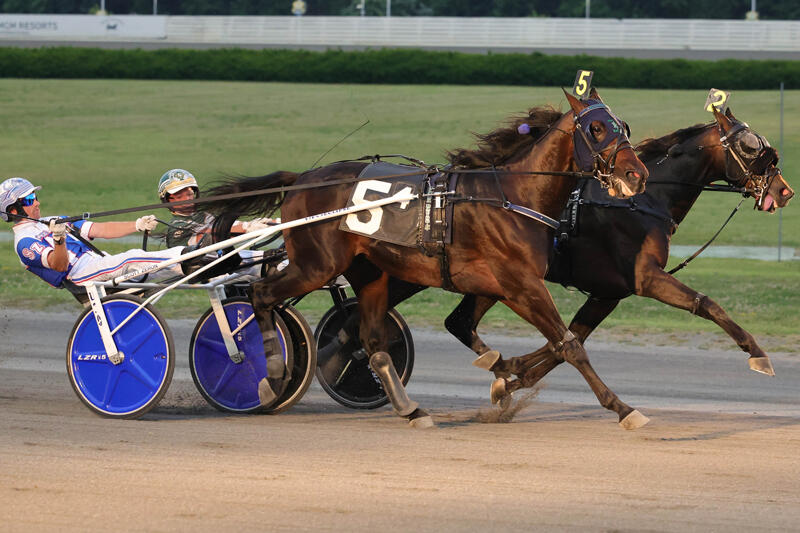 In Qualifier 2 lief’s, was das Resultat für die Fahrer betraf, genau umgekehrt: Tim Tetrick knatterte mit dem von Scott di Domenico trainierten Fear-the-Dragon-Sohn Janelle Granny als 20:10-Favorit früh nach vorn und wehrte Sweet Beach Life/Matt Kakaley mit „Hals“-Vorsprung ab.