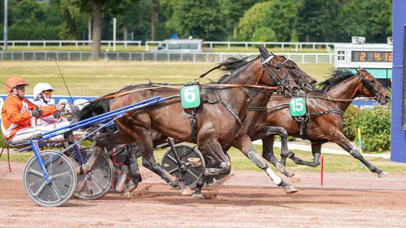 Auf der Gegenseite rückte ihm nämlich der favorisierte Gocciadoro-Schützling Guglielmo Jet, Ende März in Vincennes siegreich, auf den Pelz, worauf das Tempo rasch wieder anzog.