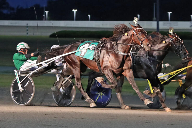 Jordan Stratton parkte den EL-Titan-Sohn dahinter ein, was letztlich „Silber“ und 10.000 Dollar wert war. Ihm folgten Southwind Admiral, Devilish Hill, Country Dagger, Kenobi und Ari Ferrari J, der seinem Vordermann wie eine Klette am Hacken hing und ab „Halbzeit“ dessen Ausflug in Spur zwei mitmachte.