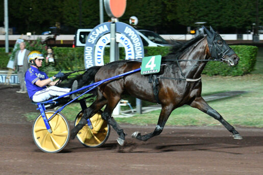 Bis dahin waren die „tifosi“ Zeuge, wie in Vorlauf 1 der einzige echte Gast - die übrigen ausländischen Traber um Cokstile und Chief Orlando sind als Dauer-Importe bei italienischen Übungsleitern stationiert - mit der Squadra Azzurra Schlitten fuhr.