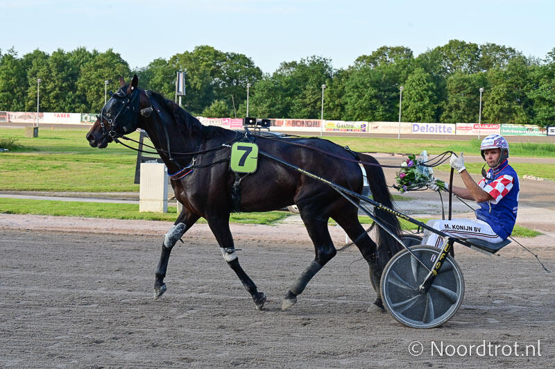 Glück hatte Michael Nimczyk nur insofern, als der internationale Flugverkehr sich nach den massiven Ausfällen wegen Software-Problemen am Vortag wieder halbwegs normalisiert hatte und er, noch bis um 13.30 in der deutschen Hauptstadt engagiert, den Sprung nach Wolvega rechtzeitig schaffte, wo er um kurz vor 20.00 Uhr im Sulky von Sangria Pellini zu sitzen hatte. Die legte im Gegensatz zu Reisegefährtin Romanze von der „2“ eher bedächtig los, so dass der deutsche Champion als Fünfter der Neun unterkam.