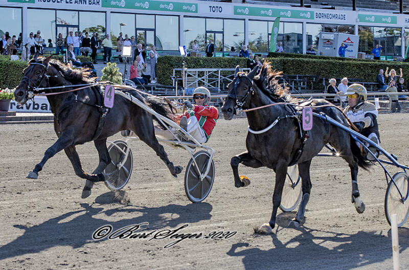 (mw) Kopenhagen-Charlottenlund, Sonntag, 30. August 2020. Ein fast wörtlich zu nehmender Favoritensturz im ersten Bogen, weitere Galoppaden von Elegant C N und Eros Zola in der Startphase sowie von Emoji nach einer Runde, ein mitreißendes Finish um den Sieg zweier mit 63 und 70 Jahren etwas älterer Herren, die sich und ihren Pferden nichts schenkten, bis zum letzten Zentimeter - das seit 1898 ausgetragene, minimal von 1,31 auf 1,2 Millionen Kronen (rd. 160.000 Euro) reduzierte Dansk Trav-Derby war nichts für schwache Nerven und hatte wie fast immer einen enormen Unterhaltungswert.