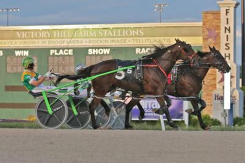 Anderson / Indiana, Mittwoch, 9. Juni 2021. Trace Tetrick, dem kleinen oder besser fünf Jahre jüngeren Bruder von Doppelweltrekordler Tim Tetrick, gelang auf seiner Heimatbahn, dem Hoosier Park von Anderson / Indiana, am Mittwochabend der 6.000. Sieg seiner Laufbahn - oder auch nur Nummer 5.999½. Im Ziel der 5. Prüfung vermochte nämlich auch die Technik die beiden dreijährigen Pacer-Wallache Er Rufus mit Don Eash und Tetricks Showboat Shooting nicht voneinander zu trennen, die gemeinsam zur Siegerehrung kamen.