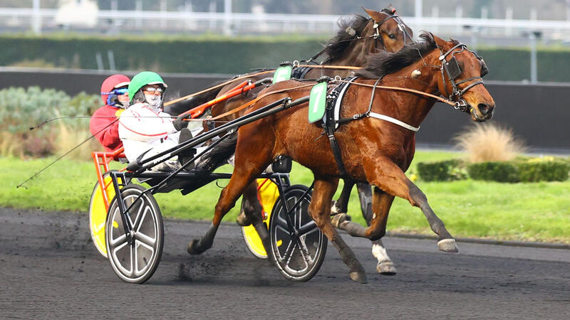 Kurz vor Beginn des Schlussbogens machte Mathieu Mottier mit der Siegerin des Saint Léger des Trotteurs ein deftiges Fass auf, doch hatte Damien Bonne aufgepasst und hielt, während La Joyeuse Wicz auch in diesem Metier komplett die Segel strich, kräftig dagegen. Mitte der Zielgeraden hatte er ausgespielt. „Daheeme“ war die Feeling-Cash-Tochter damit noch lange nicht.