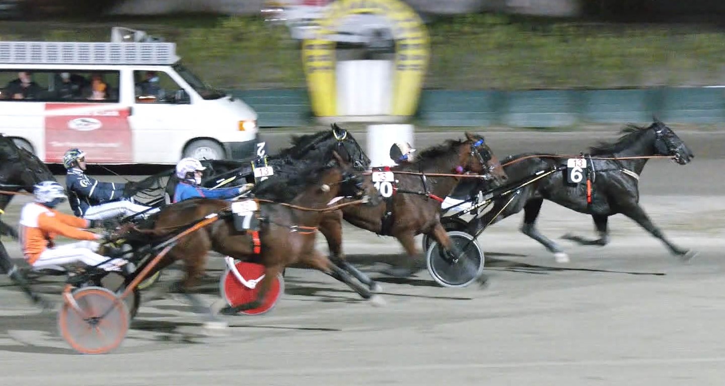 Die erste Phase verlief anders als erwartet. Zwar war Kentucky Bo von der „1“ am schnellsten flott, doch hatte Rudi Haller Erbarmen mit dessen „Stablemate“ Tyrolean Dream und ließ ihn eingangs der ersten Kurve vorbei. Offensichtlich sollte der Hunyady-Sieger von 2017 den in zweiter bzw. dritter Spur auf die Tube drückenden Nero Maximus (2) und Prosperous (6) den Weg verlängern, was ihm bestens gelang. Kaum kam erstmals die Tribüne in Sicht, durfte Nero vorbei, und nach weiterhin mörderischem Druck hatte Jaap van Rijn seinen Schützling in der nächsten Biege endlich dort, wo er ihn haben wollte - an der Tête.