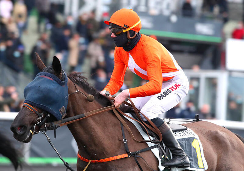 Als François Lagadeuc mit seiner Schwarzbraunen ab der Einmündung der kleinen Bahn die Schlagzahl erhöhte, blieb ihm nur Zarenne Fas ernsthaft auf den Fersen. Mit dem Sieger des Großen Preises von Deutschland 2019 versuchte Guillaume Martin gar einen Angriff, den die Un-Mec-d’Héripré-Tochter, von ihrem „Obmann“ eher sanft am Hals gestreichelt denn ernsthaft gefordert, viel sicherer abwimmelte, als der Abstand von einer knappen Länge vermuten lässt.