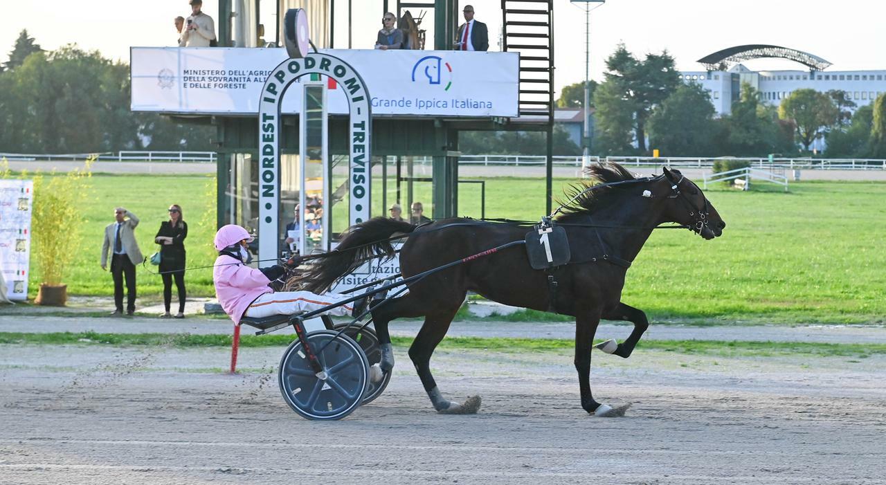 Treviso, Sonntag, 20. Oktober 2024. In großem Stil fischte Alessandro Gocciadoro in seiner Heimat. Um 121.000 Euro ging’s im internationalen Gran Premio Giuseppe Biasuzzi der Gruppe I für die Vierjährigen, was allein aus dem Quartier des 49-jährigen Hans Dampf in allen Gassen bzw. auf (fast) allen Pisten Europas ein Quintett zum 1.000-Meter-Oval des Ippodromo San Artemio im nordostitalienischen Venetien lockte.