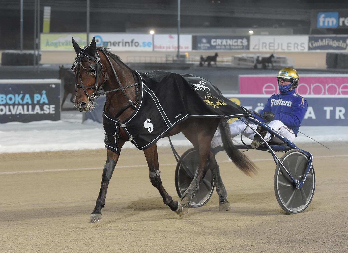 Solvalla, Mittwoch, 6. Dezember 2023. Finanziell herausstechend bei der abendlichen Doppel-Veranstaltung in Solvalla und Bergsåker, die gemeinsam die V86-Wette ausfuhren, war der Vinterfavoriten für Schwedens Zweijährige. Üppige 200.000 Kronen, die es allein für Platz eins gab, lockten allerdings nur sechs Youngsters hinterm Ofen hervor auf die Hauptstadtbahn.