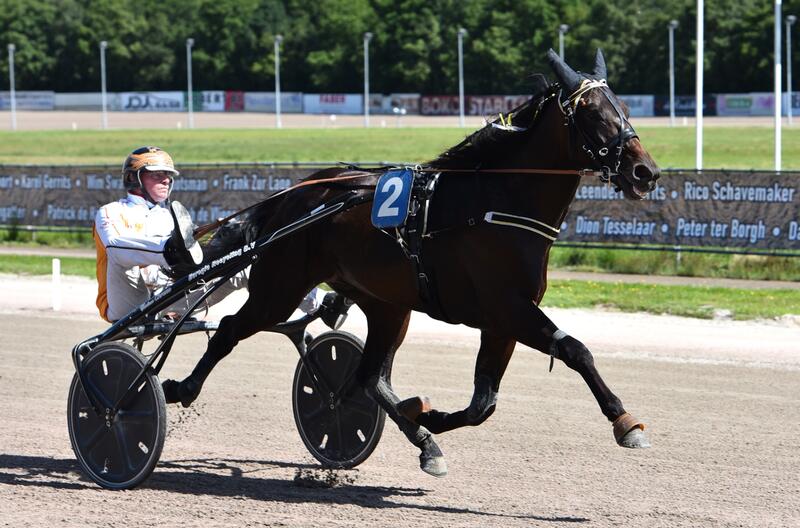 Zur Farce wurde das Match der „fillies“, als Olivia Hazelaar beim Anrollen des Startautos ewig auf der Stelle sprang und endlos abgehängt war. Die Southwind-Frank-Tochter Frisia setzte sich von der Pole Position vor Olivia W Boko vorne fest, und dann wurde es ganz langsam bis zu Stehversuchen, wie man sie aus dem in Holland sehr populären Radrennsport kennt. Erst nach 1.300 Metern wurden die Bremsen nachhaltig gelöst, und Jeffrey Mieras gewann mit Olivia W Boko rasch mit drei Längen die Oberhand.