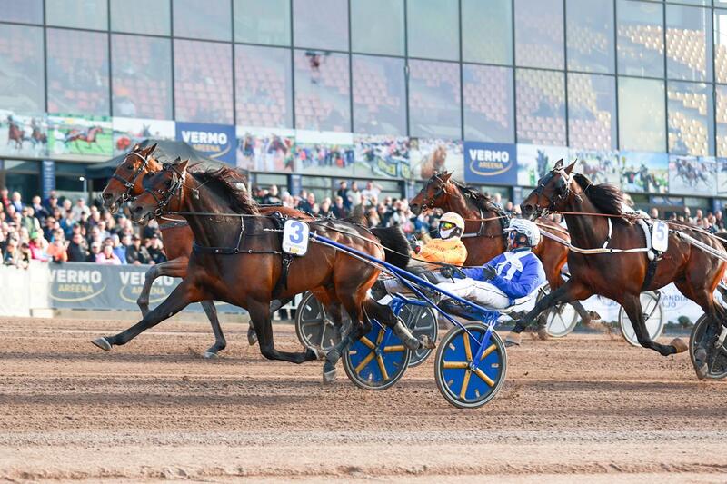 Der seinen 93. Start absolvierende gebürtige Norweger in schwedischen Diensten befreite sich unter nunmehr energischen Wippern seines Chauffeurs zum 32. Volltreffer seiner bei 1.251.650 Euro angelangten monströsen Karriere und darf wie im Vorjahr in drei Wochen beim Elitloppet antreten. Eine halbe Länge zurück schmetterte Catullo Jet einen sehenswerten Endspurt aufs Parkett.
