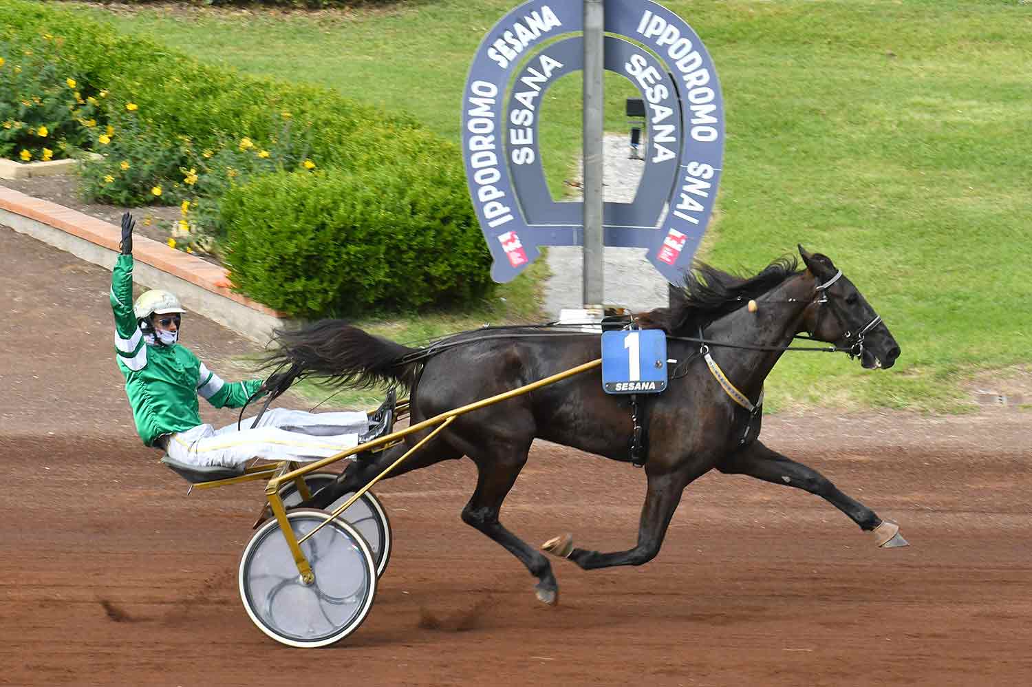 Alessandro Gocciadoro gelang beim zuschauerfreien Zehn-Rennen-Menü lediglich ein Sieg, doch der hatte es in sich. Im Premio Flamingo OK für die beste Klasse um 13.200 Euro zertrümmerte er mit Vernissage Grif nicht nur die lediglich vier Mitstreiter. Als der Sturmlauf des Varenne-Sohns nach 1.600 Metern zehn Längen vor Showmar beendet war, leuchtete ein neuer Bahnrekord von 1:09,4 auf, zugleich neuer italienischer Rekord für 1000-Meter-Bahnen.